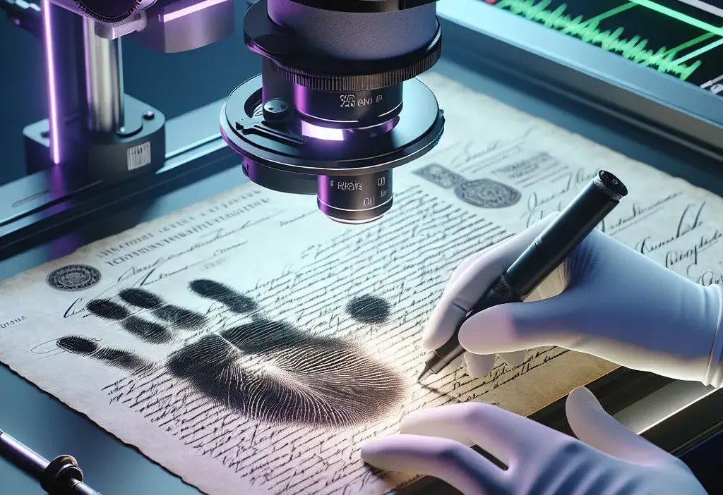 Perbedaan antara dugaan dan pembuktian terletak pada metode. Dalam sengketa dokumen, urutan coretan tanda tangan dapat diuji melalui inspeksi mikroskopis, pencitraan multispektral/near-IR, dan evaluasi karakteristik deposit tinta pada titik persilangan, dengan desain uji yang dapat diulang.
